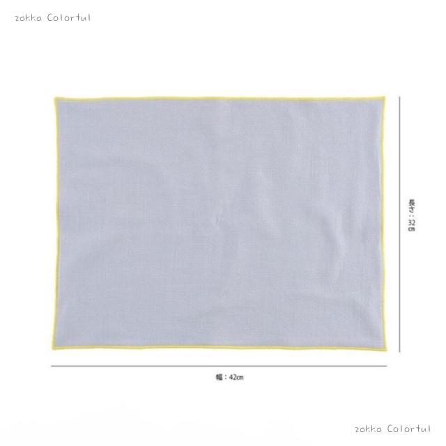 やさしい凹凸のある織り柄と、食卓を明るく彩る縁かがりが特徴で、日々の食卓に華やかさをプラスします。
